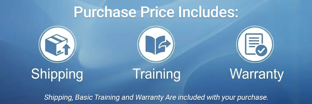 Delivery – Continental US only, Training – Basic Training, Warranty – 1 year parts, 90 day labor